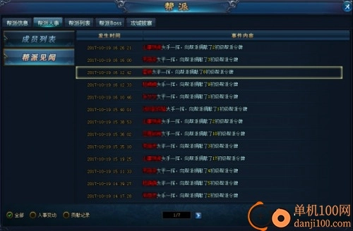 可查看帮派动态见闻,包括:人事变动、贡献情况、捐赠动态等