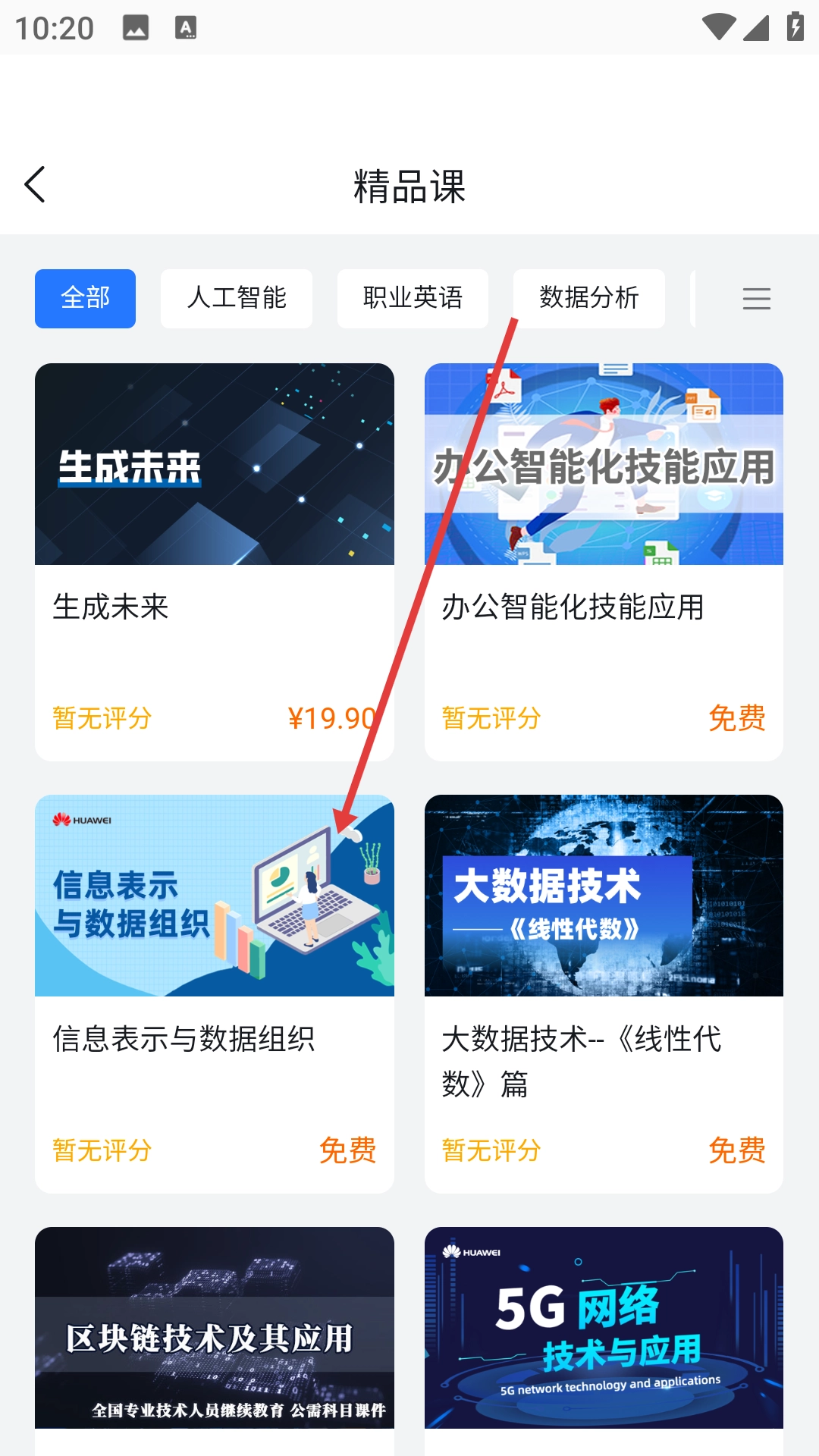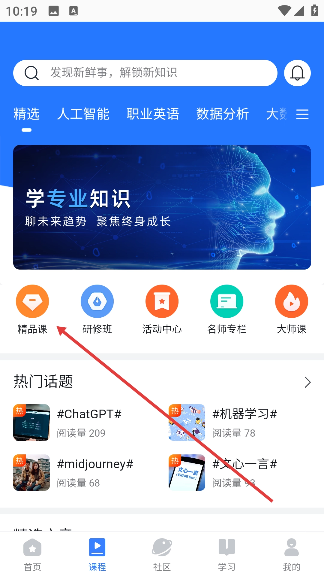 2、在课程页面点击【精品课】,进入精品课列表页面。