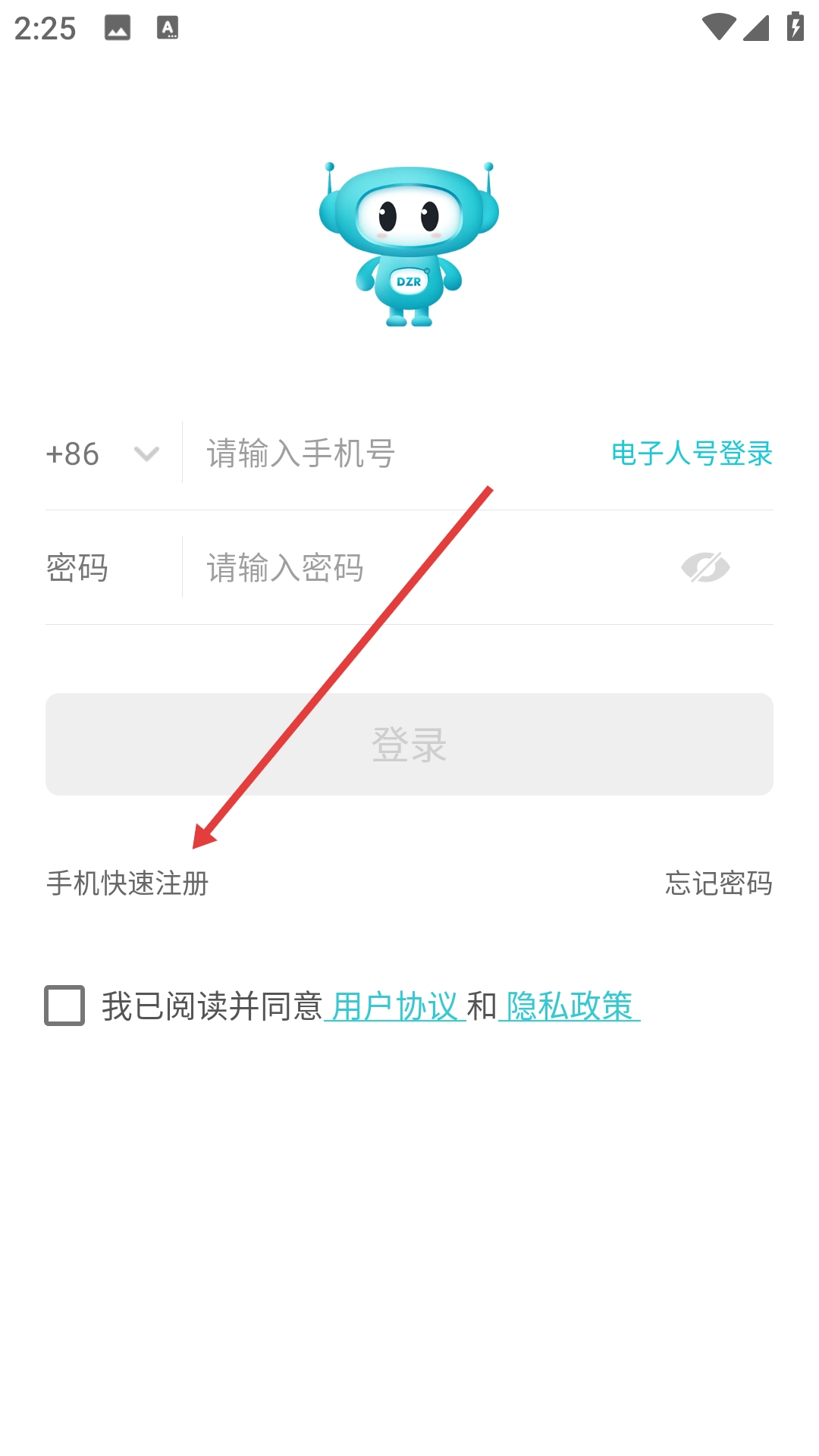 1、点击【手机快速注册】选项,跳转至手机快速注册页面。