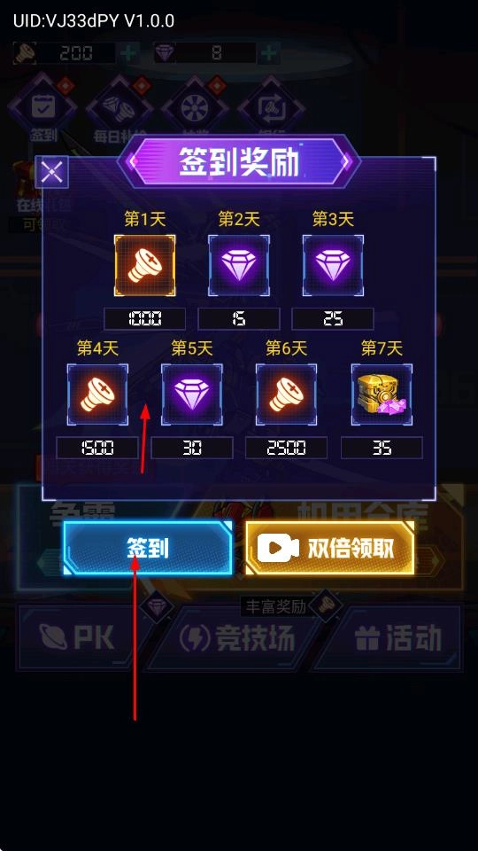 4、参与每日签到活动,领取对应天数的奖励,积累资源助力机甲养成与战斗。