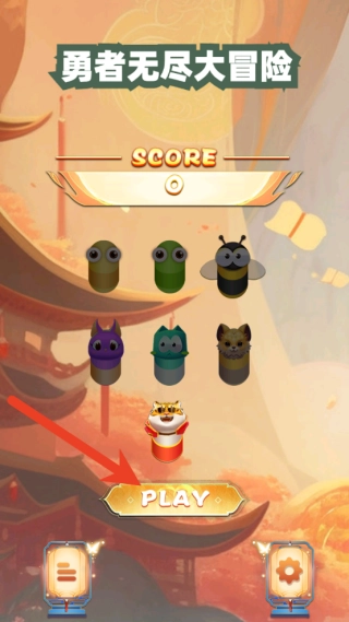 1、进入游戏后,玩家首先来到充满冒险氛围的主界面,可以选择"PLAY"模式体验剧情关卡,或者选择"无尽挑战"模式测试自己的极限操作