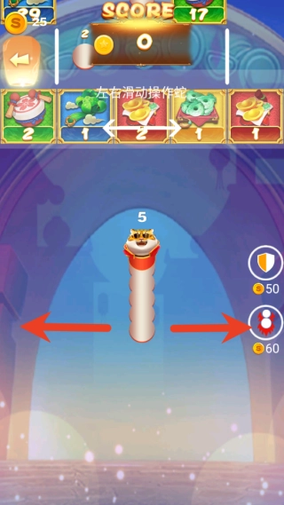 1、左右滑动屏幕即可操控小蛇移动,需避开障碍物并吃掉行进路线上的数字块。