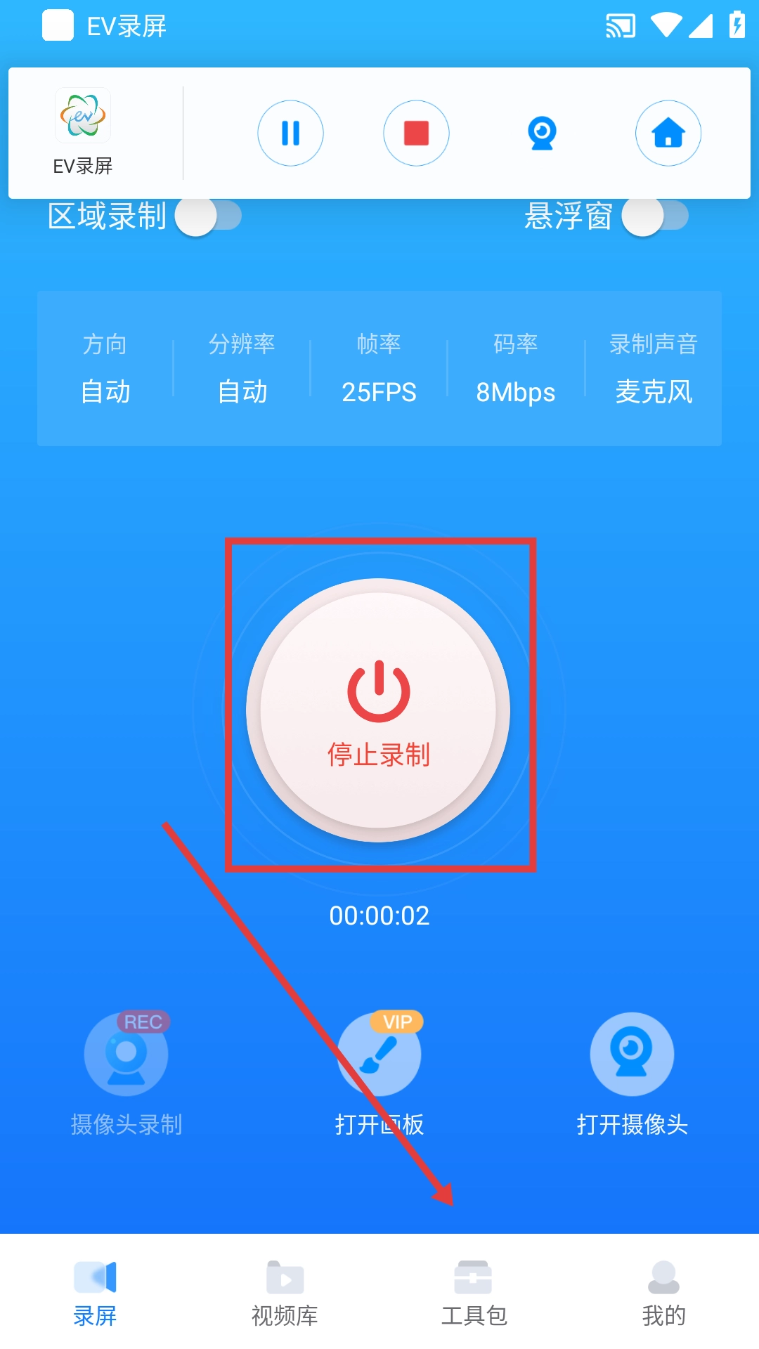 2、录制完成后,点击【停止录制】按钮,结束屏幕录制。