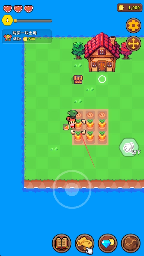 2、收获后,点击放下按钮,可将物品放置指定位置。