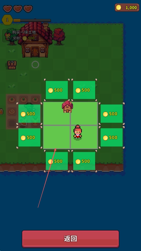 3、点击屏幕上方购买一块土地提示区域,消耗金币购买新土地。