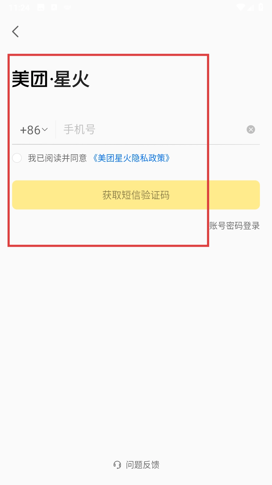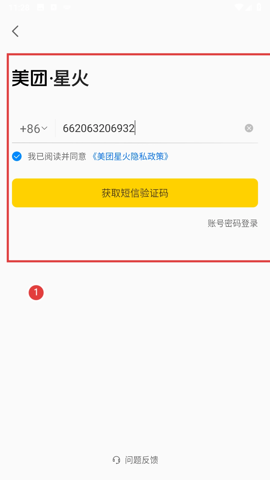 2、在登录页面,输入手机号码,并勾选同意《美团星火隐私政策》。