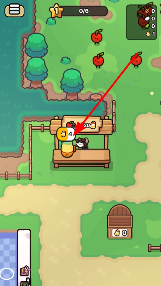 3、采集到水果后,前往售卖点,将水果放置到售卖位置,设置好售卖相关的内容,等待顾客前来购买,以此获取商店收益。