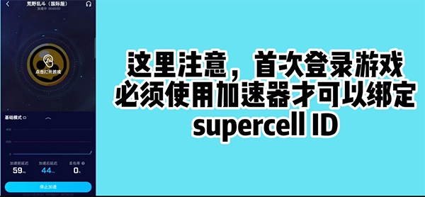 首次登录游戏时,必须借助加速器才能完成supercell id的绑定操作。
