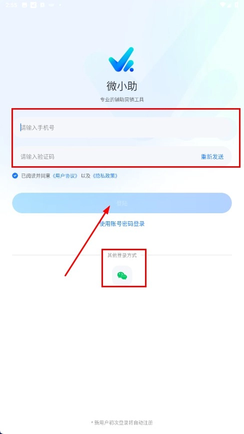 1、登录页面支持两种登录方式:一是输入手机号并填写验证码进行登录;二是通过点击【微信-其他登录方式】完成登录。