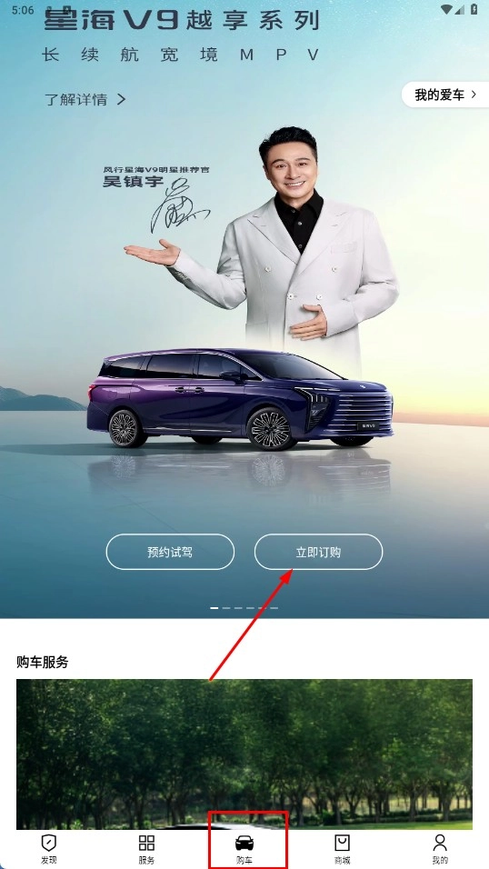 1、在购车页面点击【立即订购】功能按钮,进入车型选择页面。