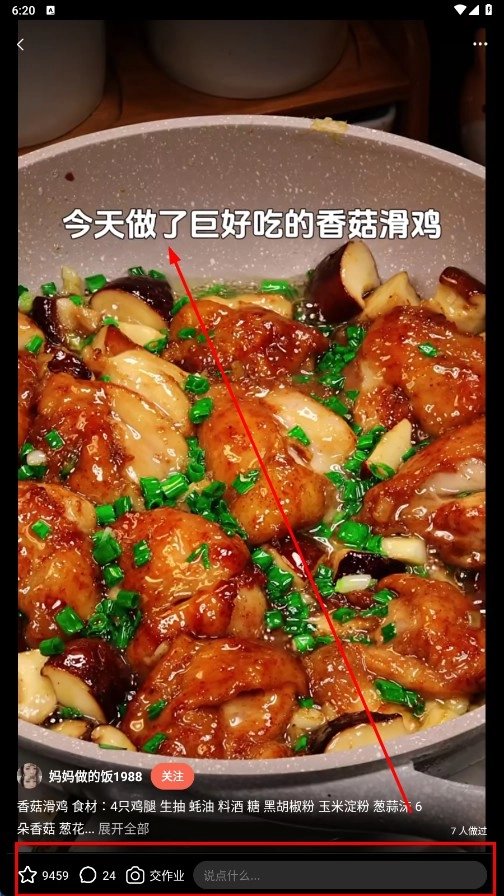 4、在菜谱详情页可查看菜品制作内容,还能进行收藏、评论、交作业等操作。