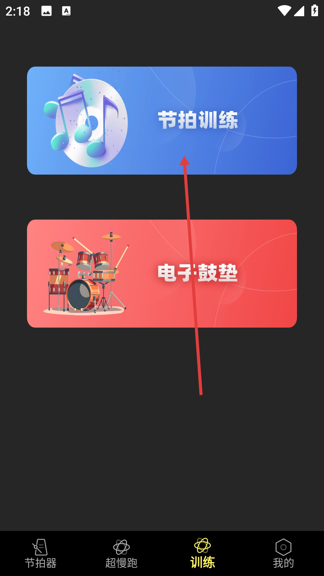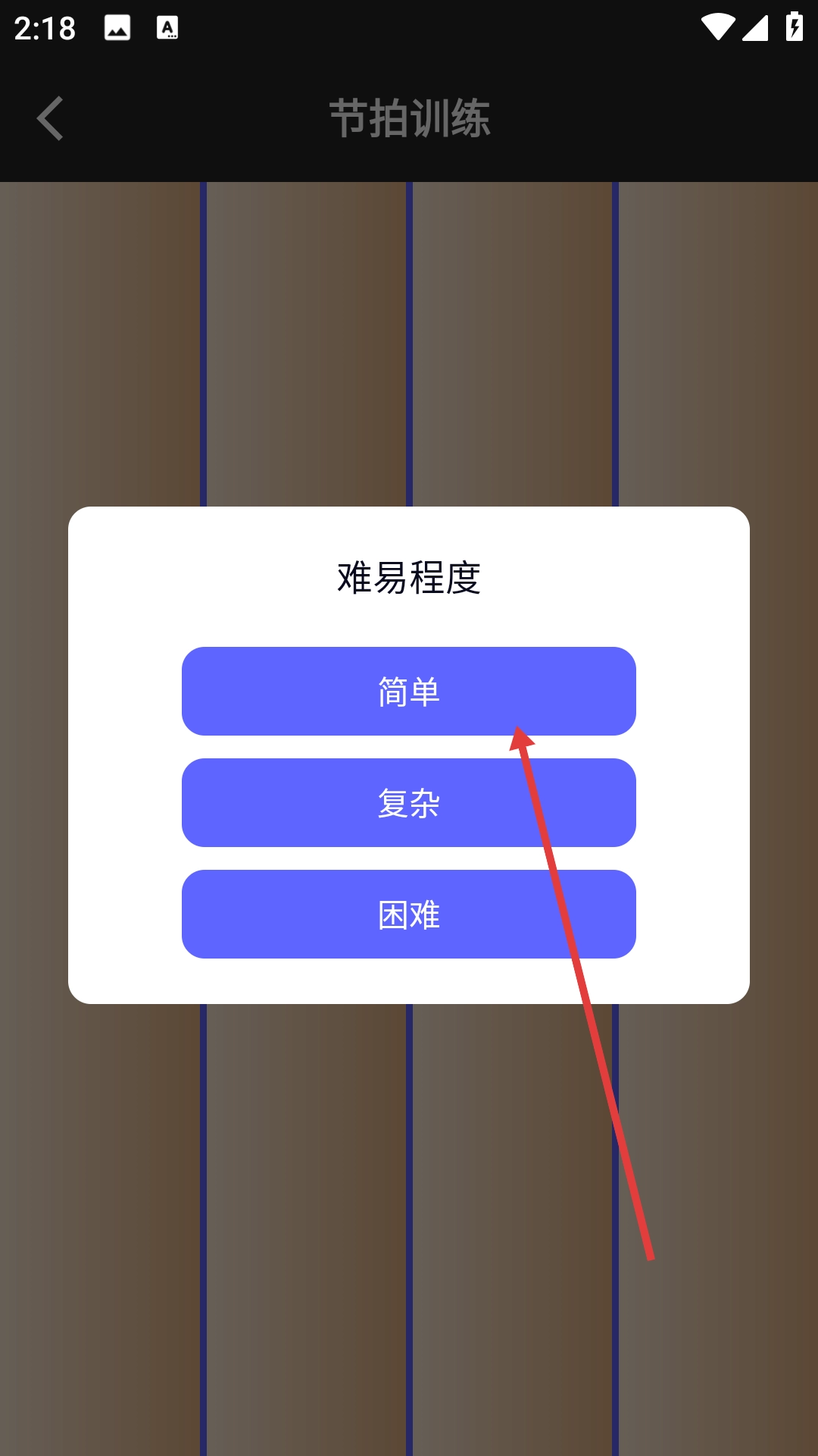2、在训练页面点击【节拍训练】,进入难易程度选择页面。