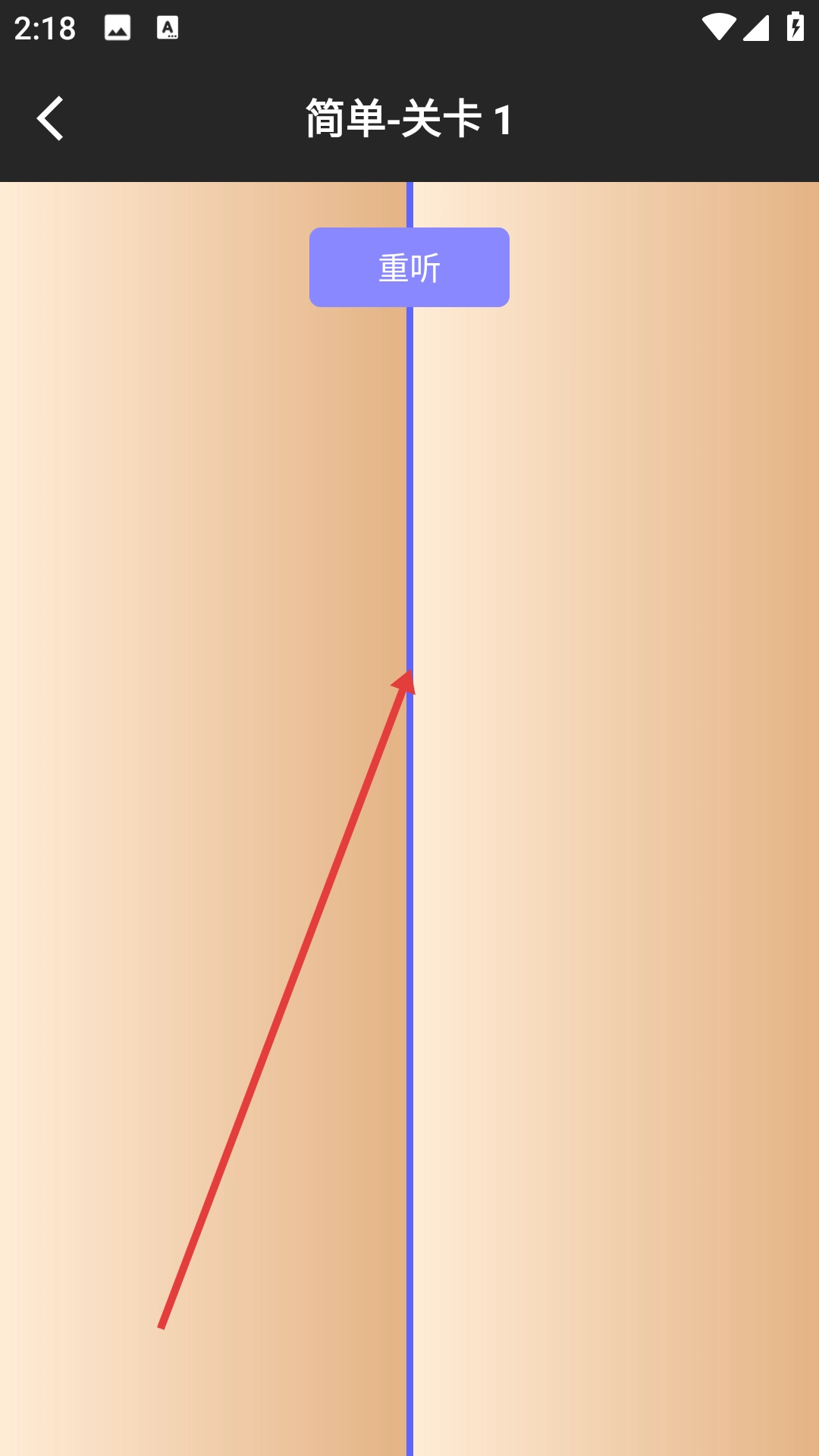 4、在简单关卡1页面可进行节拍训练,若需重新聆听可点击【重听】。