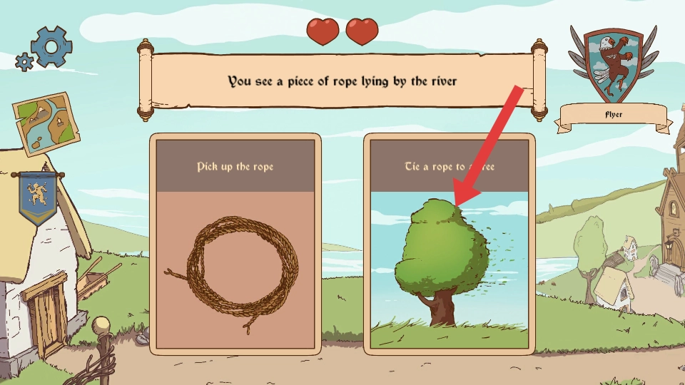 2、发现河边的绳子,选择把绳子系在树上可触发相应的场景互动,可能为后续任务提供帮助,丰富游戏的探索元素。
