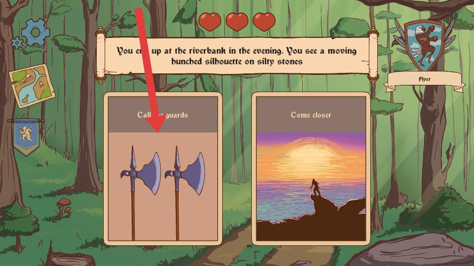 4、在傍晚的河岸发现可疑剪影,选择呼叫守卫可借助守卫的力量应对潜在危险,保障角色安全,推进冒险的剧情。