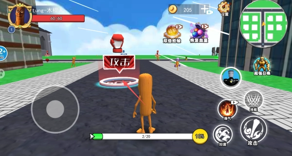 1、滑动虚拟摇杆控制角色移动,点击攻击按钮可以攻击敌人。