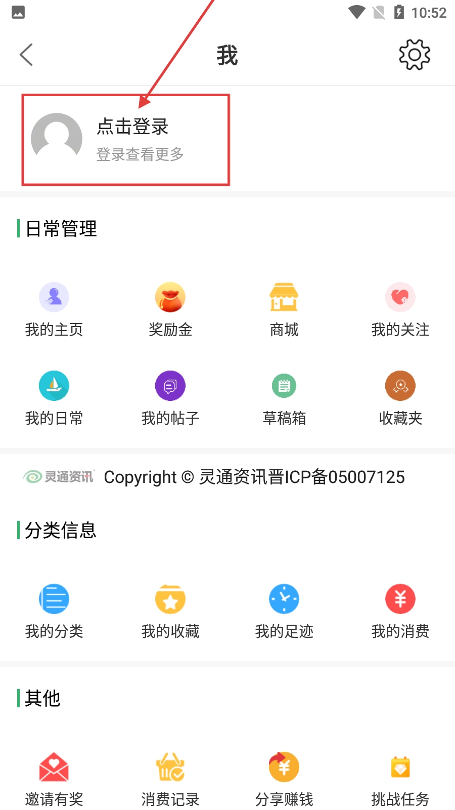 进入灵通资讯后,点击左上角的个人中心图标,即可进入“我”的页面。