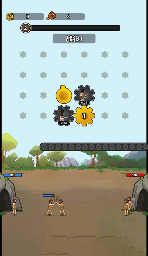 2、齿轮运转后会自动生产兵力,与敌人进行对战;