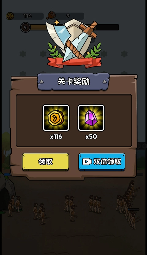 5、最后,成功推倒敌方营地即可获胜,并获得金币和钻石奖励。