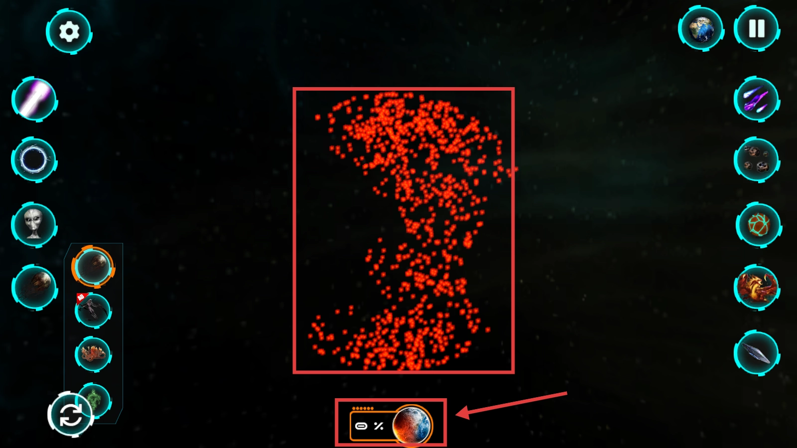 2、在行星毁灭模组中,我们试试看点击外星生命图标,对地球释放,就能触发毁灭进程,看火焰在星球蔓延呢。