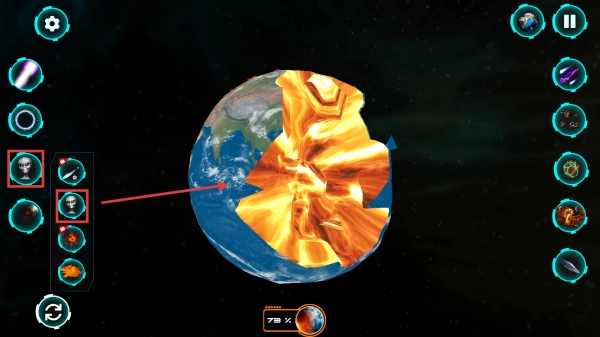 3、再切换一个终极武器试试威力,持续攻击地球,让爆炸更猛烈些吧。