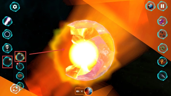 4、最终我们见证地球化为红色粒子,底部进度达到0,完成星球毁灭,解锁新的太空玩法啦。