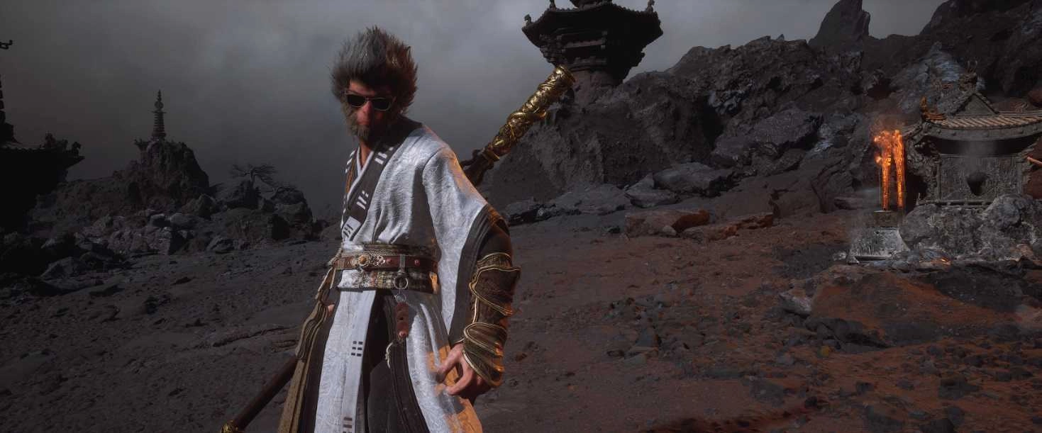 黑神话:悟空天命人猫王墨镜MOD是一款能让天命人戴上猫王同款墨镜的游戏MOD,酷炫的银框太阳镜和悟空的造型意外契合,能为玩家带来全新的赛博摇滚体验,快来试试吧!