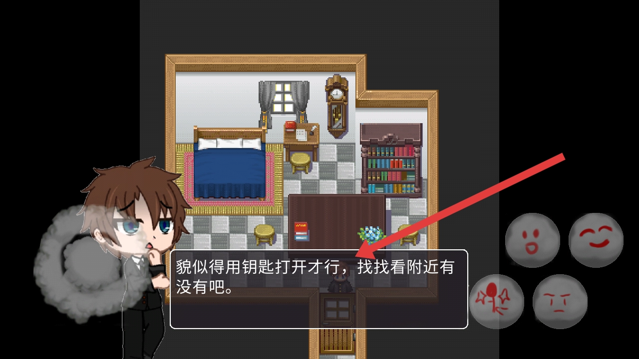 3、需要根据对话提示貌似得用钥匙打开,在房间及周边场景搜索钥匙道具,推进解谜流程。