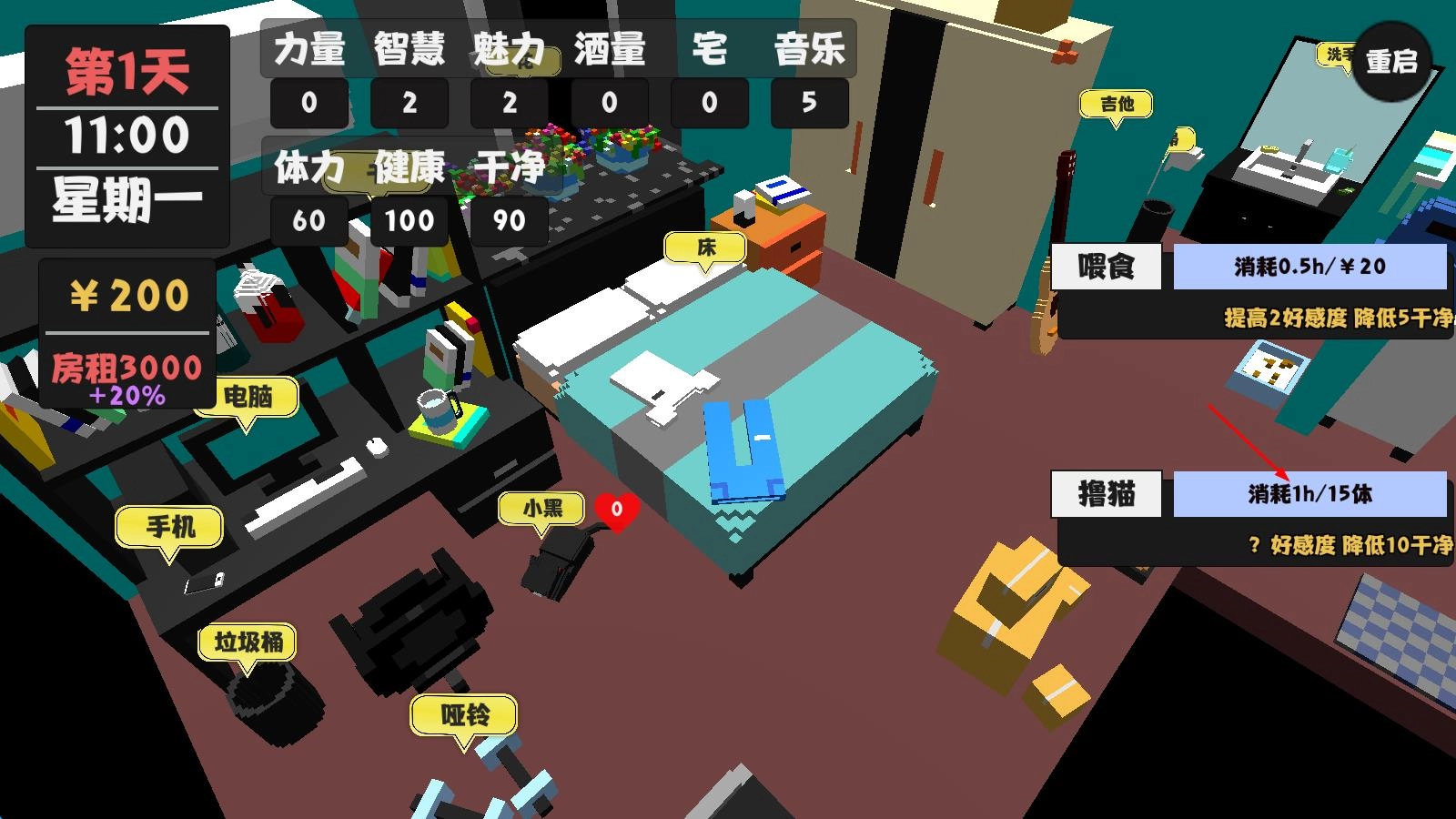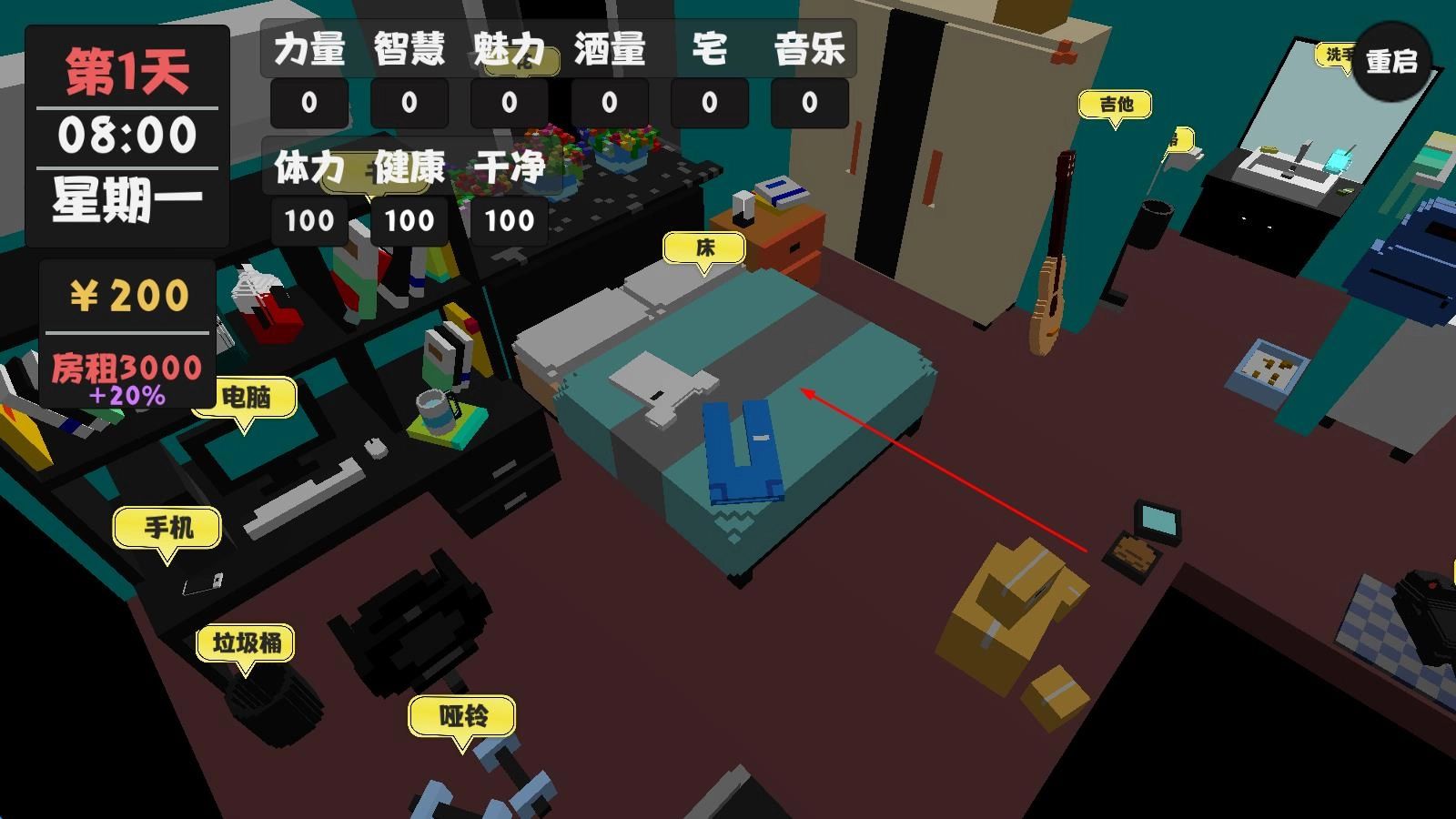 1、踏入属性生活的世界,玩家会来到像素风的初始场景,借助基础操作掌握角色的移动与互动方法,由此开启对这个世界的初步探索之旅。