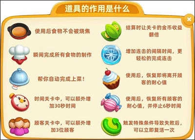 小镇大厨里有各式各样的道具供大厨选择,辅助大厨更好地通关和获取更高的收益。