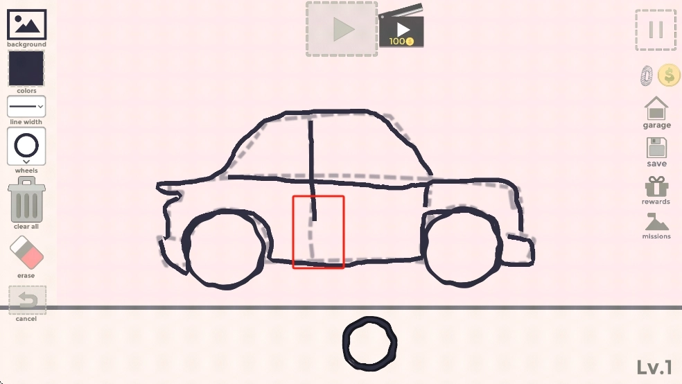 1、车辆自由绘制:选画笔的颜色和粗细,在画布上画车身、车轮、车窗,哪怕画成面包的形状也没关系,画完我们点击车辆就能够让它活起来。