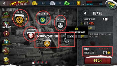1、首先为大家介绍关卡选择界面(见上图),当前游戏包含“主线”“刷钱”“BOSS”“每日挑战”“狙击关卡”与“活动”六大板块。玩家只需跟随主线推进,逐步提升等级,游戏的各项功能便会依次解锁。点击屏幕中央的图标即可选择对应模块,此时右侧会显示该模块的关卡详情,包括关卡数量、火力要求以及难度奖励等信息。选定关卡后,点击“开始”按钮,就能进入僵尸前线的战斗现场,消灭僵尸并营救幸存的同伴。