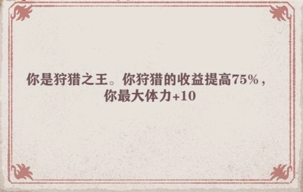 在低光环的情况下,属性不足,打工收益较低。狩猎之王可以在前期快速获得金钱,购买需要的物品。