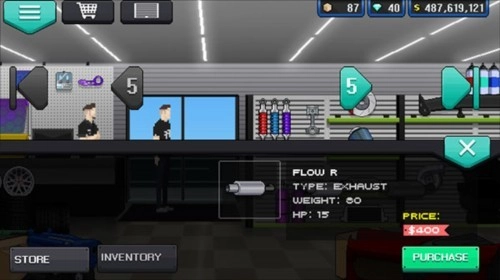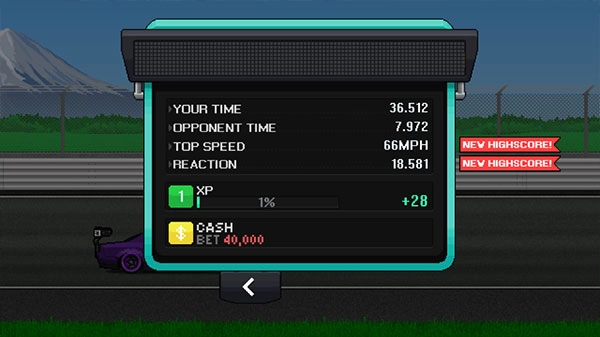 这个游戏的玩法是比较自由的,玩家可以根据自己的审美去对赛车进行改装升级,也可以为赛车更换颜色,采用横版的画面设计,可以给玩家带来更加完美的视觉感受,游戏中几乎所有的赛车配件都能够进行升级,玩家可以轻松打造一个独属于自己的赛车,驾驶赛车去完成更多的竞速比赛。