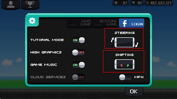 2、在这个页面会显示有个STEERING,这个就是换到的操作了,玩家可选择触摸进行换道,也可以选择重力感应换道。