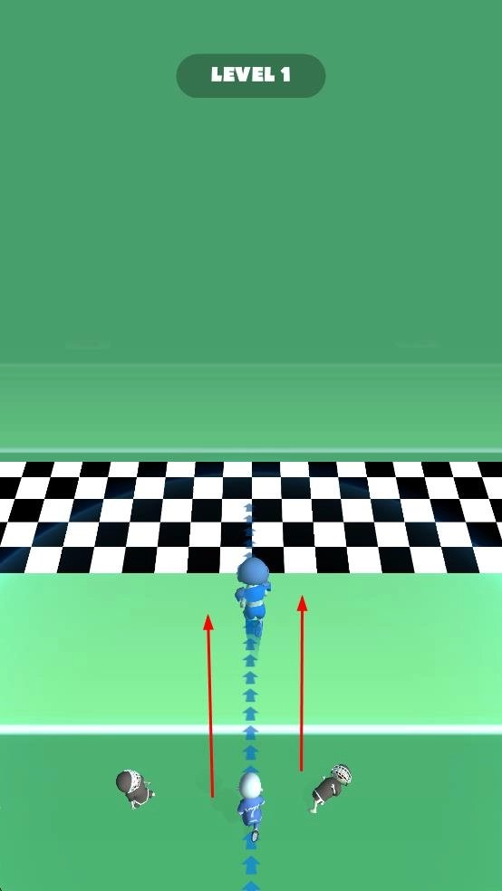 1、进入LEVEL1关卡后,操控蓝色角色在绿色赛道上前进,通过拖动来调整移动方向,开启竞技跑酷挑战。