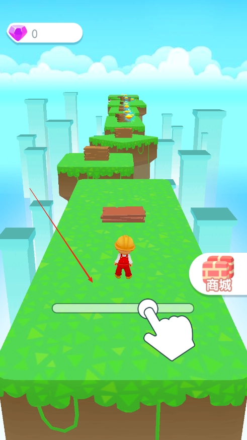 2、收集木板的同时收集黄色钻石,如果木板不够铺,小人可以跳跃一段距离,但距离太远还是会坠落悬崖。