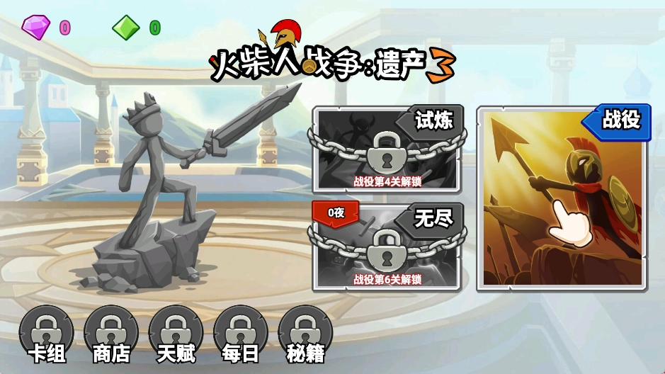 《火柴人战争遗产3》是一款火柴人风格的战争策略游戏,玩家将以指挥官的身份,在策略与挑战并存的世界里运筹帷幄。游戏既传承了前作的经典元素,又融入了不少创新内容,支持自定义军队、战场等,让玩家能体验多样玩法;精致的像素画风勾勒出细腻的火柴人形象与战斗场景,为玩家带来沉浸式的游戏乐趣。