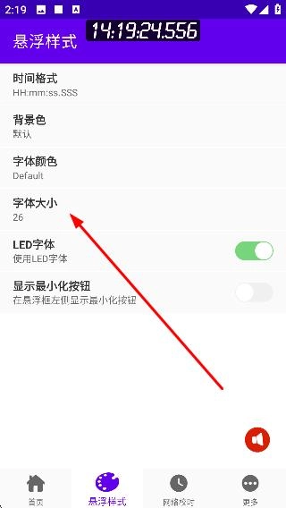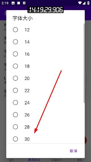 2、在悬浮样式设置页面点击【字体大小】,进入字体大小选择弹窗。
