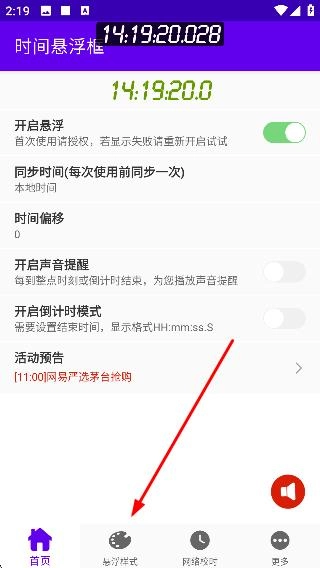 1、在时间悬浮框界面点击【悬浮样式】选项,即可进入悬浮样式的设置页面。