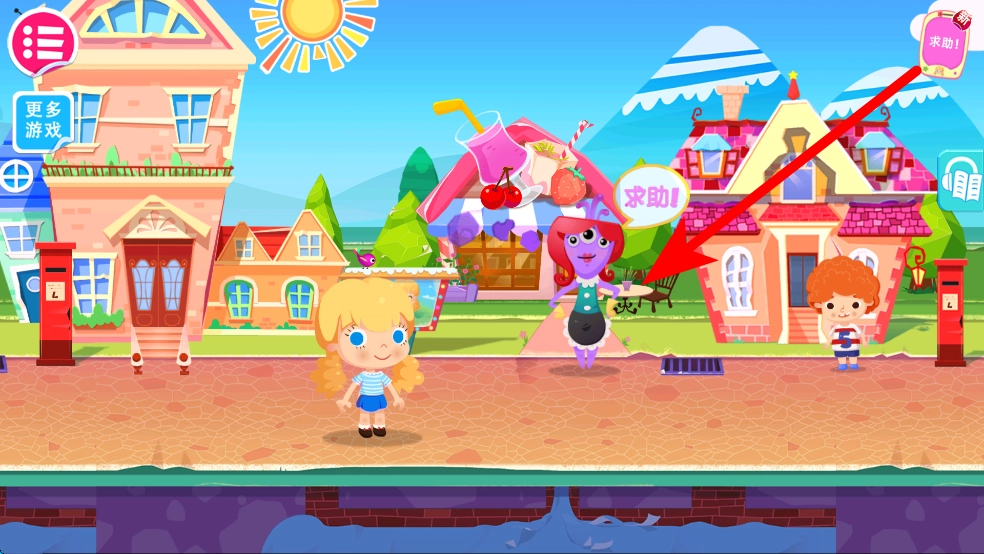 在小镇场景里,要是看到求助提示,就能去对应的位置做出回应,进入需要帮忙的区域,开启之后的互动任务,推动小镇冒险的进度。