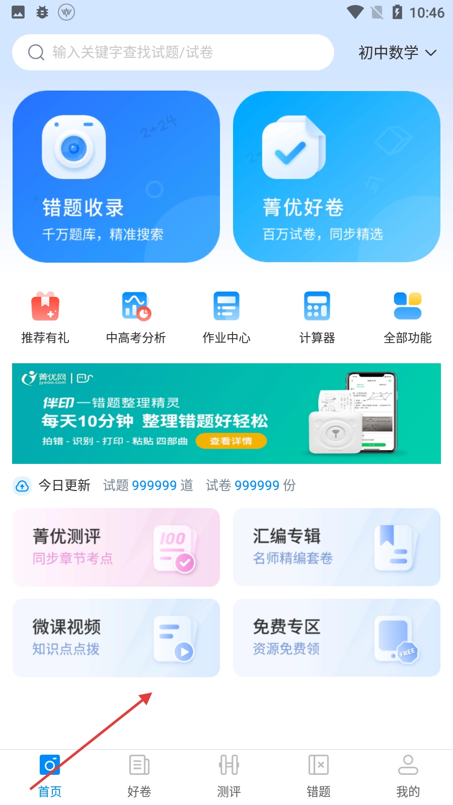 4、注册登录后,可在菁优首页使用错题收录、查看菁优好卷等功能,也可利用中高考分析、作业中心等工具辅助学习。