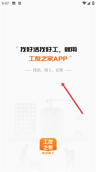 1、初次了解【工友之家】,它的功能涵盖【找活-找工-记账】,可以明确知道这是为务工人员提供找工作与记账服务的平台。