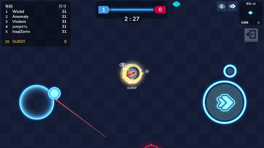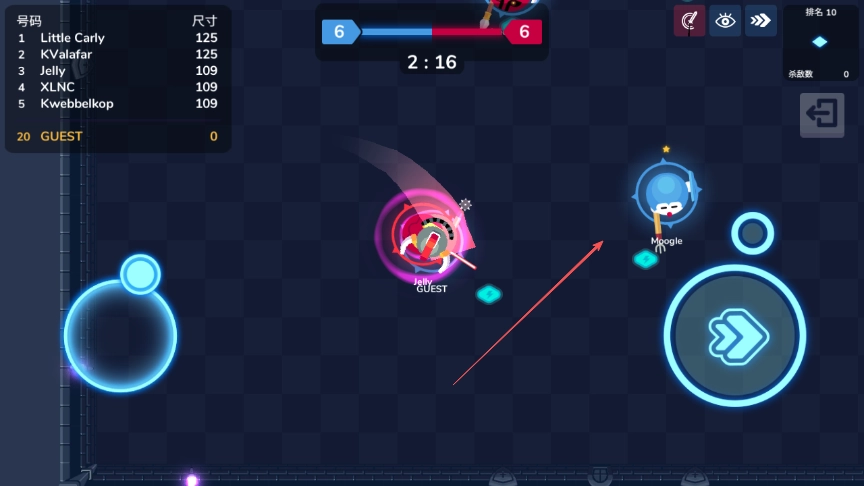 4、遇到其他玩家操控的角色时,利用技能和走位攻击对方,提升杀敌数,争取更高排名。