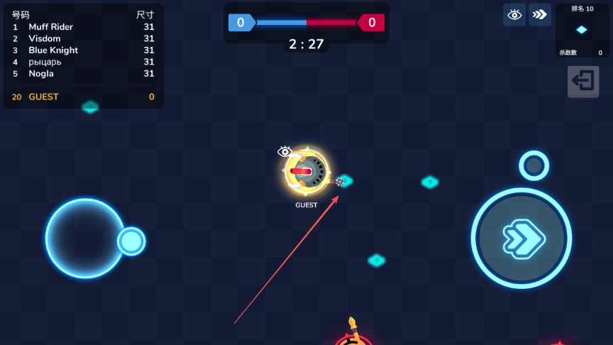 3、看到蓝色光圈等资源时,操控骑士靠近获取,增强自身实力。