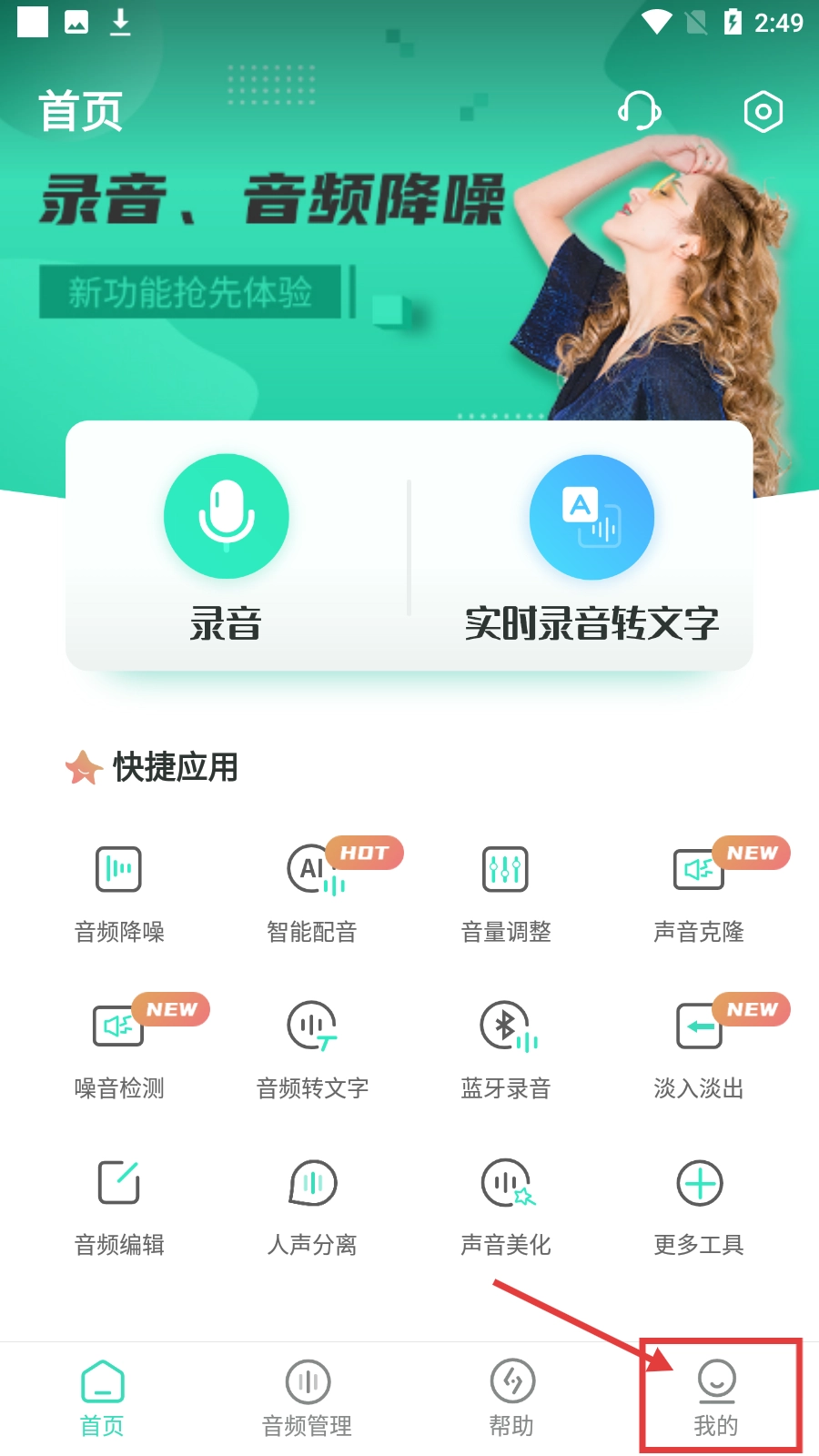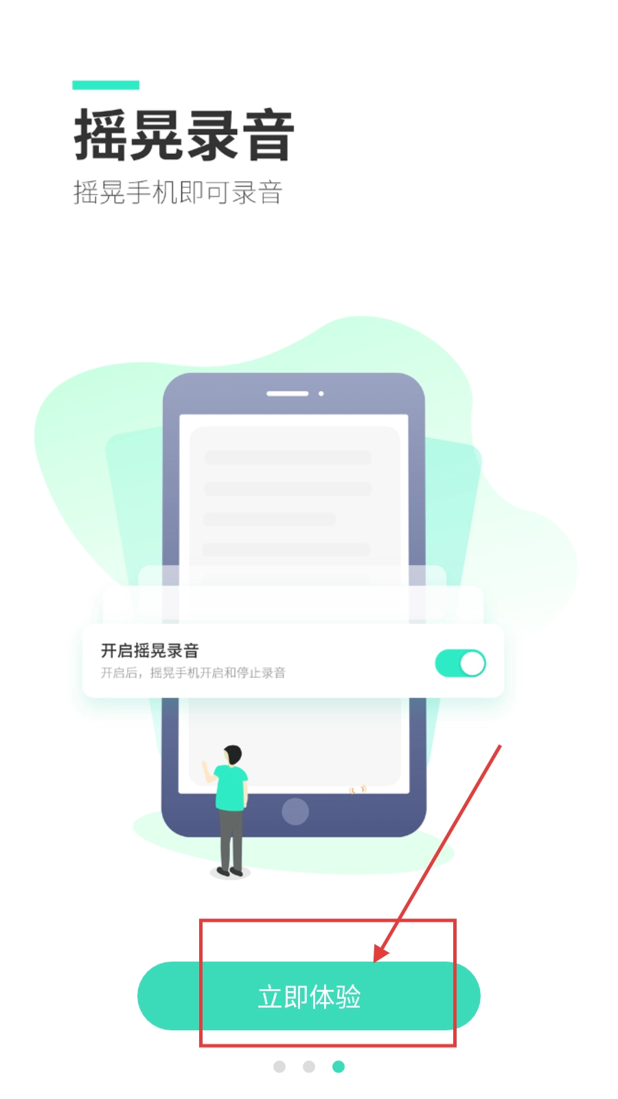 在软件的启动页面,点击【立即体验】按钮,即可进入录音类的主界面。
