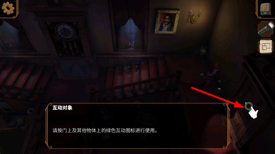 2、与门等物体上的绿色互动图标交互,可触发相应的解谜或剧情事件,互动是获取线索、解锁新区域关键方式。