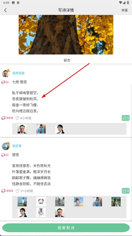 3、进入写诗详情页,可浏览他人配诗内容,点击【我要配诗-功能按钮】可参与配诗。