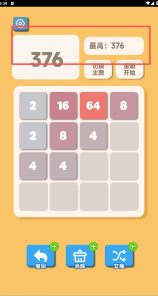4、游戏界面还会实时显示你当前的分数,以及你在游戏中达到的最高分数。