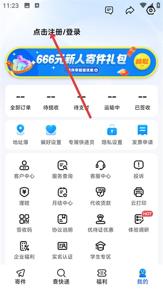 4、在登录页面输入手机号和验证码,勾选同意协议后点击【立即登录】,可完成登录使用快递服务。